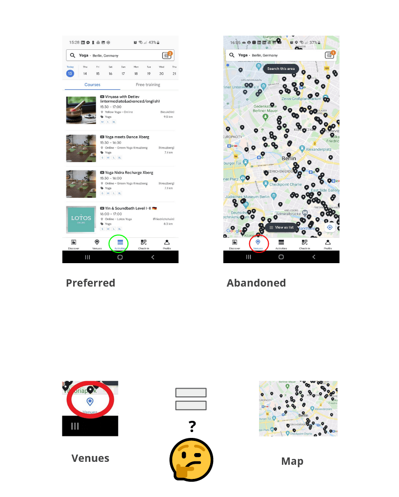 - Users don’t necessarily expect to find a map when choosing the Venues tab